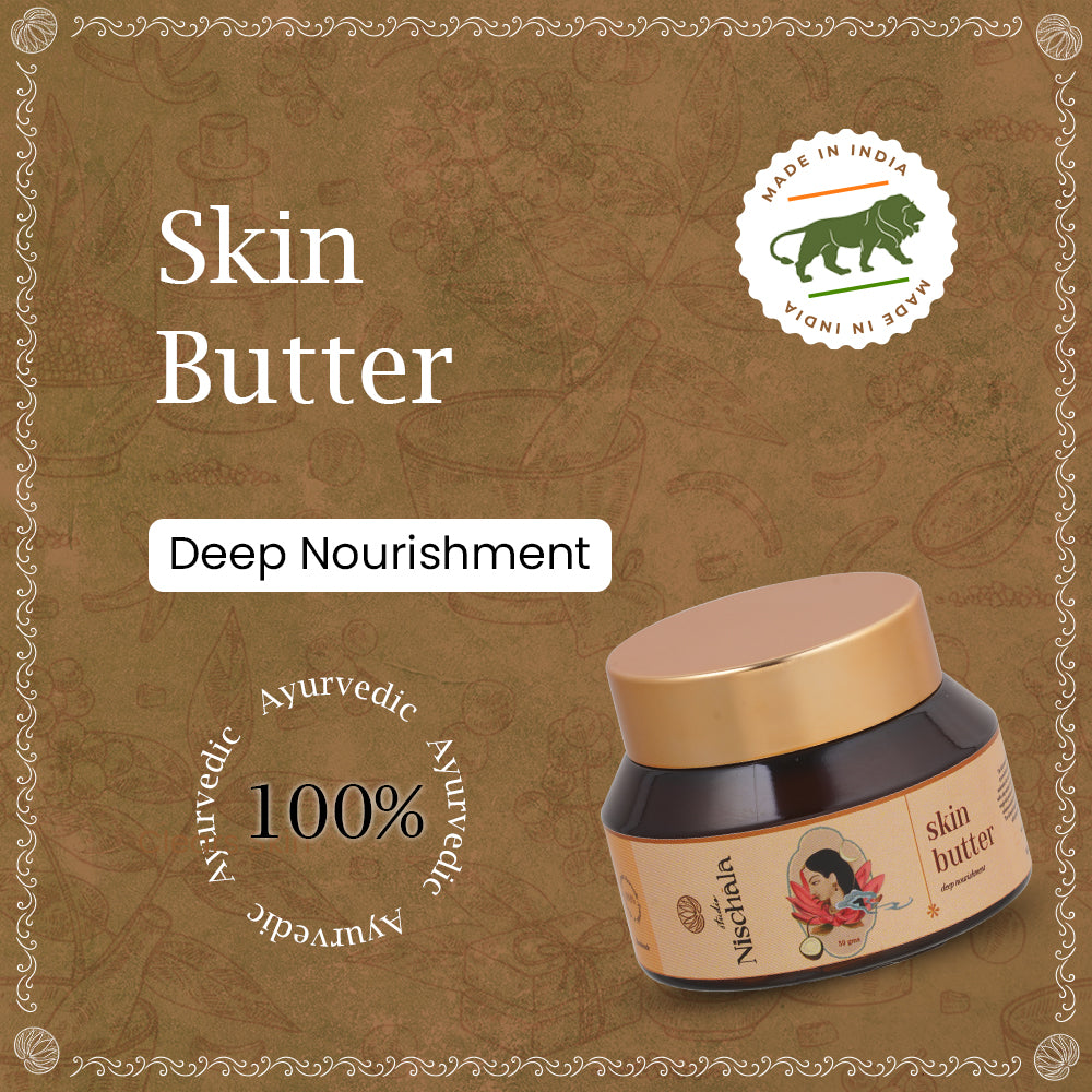 • Satisfy your skins thirst with Studio Nischala skin butter. A tiny amount of the butter makes your rough, dull and dry skin hydrated. Indulge your skin with all natural ayurvedic ingredients that gives instant hydration, leaving the skin rejuvenated and revitalized. This gives the skin a protective barrier against environmental stressors.